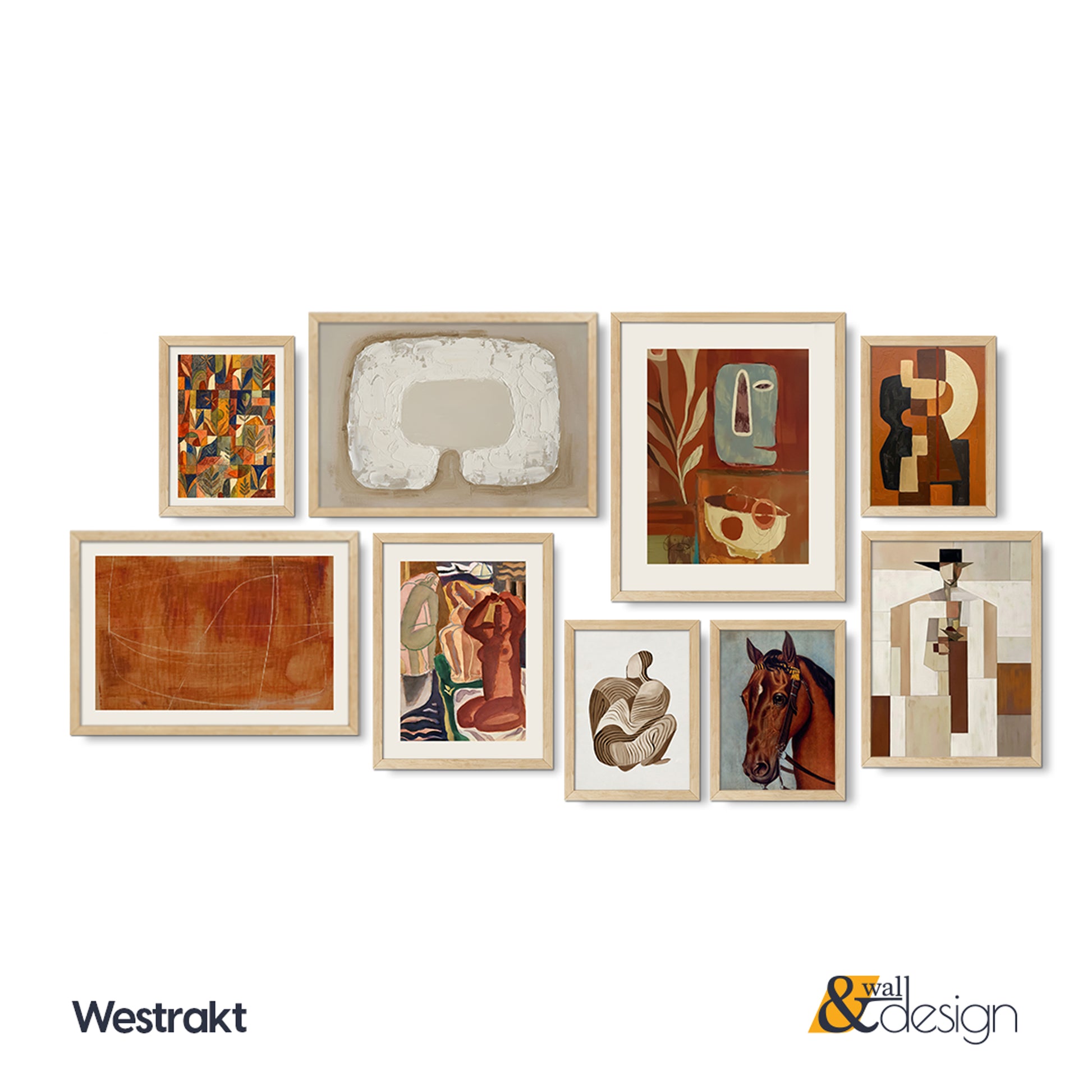 Westrakt Curated Framed Wall Art Gallery Set - 9 Mid-Century & Abstract Prints